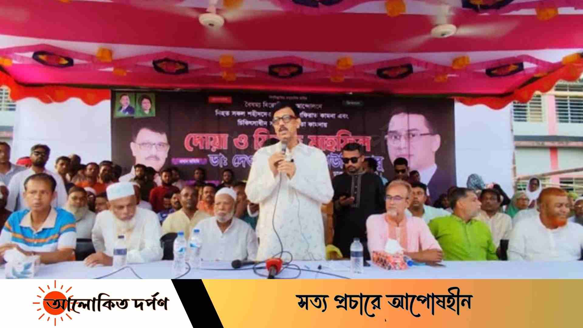 মোঃ আসিফুজ্জামান আসিফ, সিনিয়র স্টাফ রিপোর্টারঃ বৈষম্যবিরোধী ছাত্র আন্দোলনে গুলিবিদ্ধ হয়ে নিহত স্থানীয় ছাত্র-জনতাসহ সকল শহীদদের রুহের মাগফেরাত ও আহতদের সুস্থতা কামনা করে দোয়া ও মিলাদ মাহফিল অনুষ্ঠিত হয়েছে।