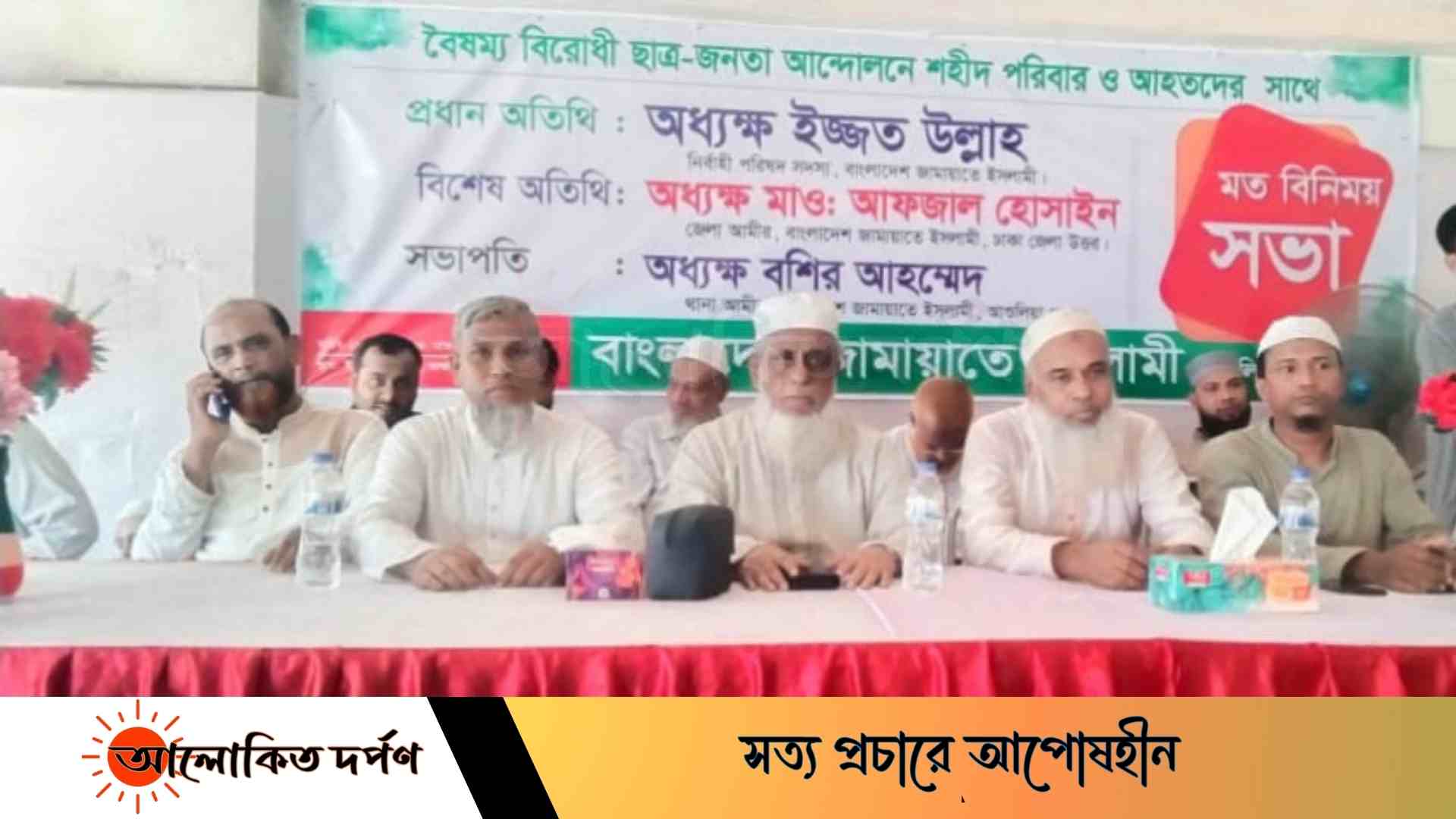 মহিউছ ছাইয়েদ, নিজস্ব প্রতিনিধিঃ বাংলাদেশ জামায়াতে ইসলামী সাভার উপজেলার আশুলিয়া থানার উদ্যোগে আশুলিয়ায় বৈষম্য বিরোধী ছাত্র-জনতার আন্দোলনে শহীদ পরিবার ও আহতদের সাথে মতবিনিময় সভা অনুষ্ঠিত হয়।