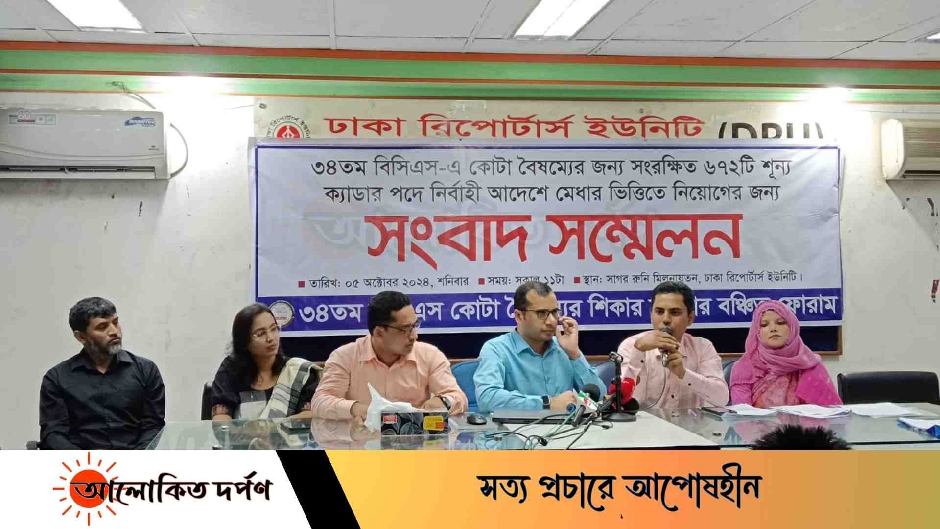 তারা আরও উল্লেখ করেন, ৩৪তম বিসিএসের প্রকাশিত বিজ্ঞপ্তি ও চূড়ান্ত ফলাফল বিশ্লেষণ করে দেখা যায়, বিসিএস সাধারণ ক্যাডার পদে ৫টি, প্রফেশনাল/টেকনিক্যাল ক্যাডার পদে ১১১টি (সহকারী সার্জন ৭৪, সহকারী ডেন্টাল সার্জন ১৩, ভেটেরিনারি সার্জন ১৪টি), সাধারণ শিক্ষা (প্রভাষক, বিভিন্ন বিষয়ে) ক্যাডারে ২৮৮টিসহ প্রায় ৩৫টি ক্যাডার পদে ৬৭২টি পদ শূন্য রাখা হয়। ৩৪তম বিসিএসের আগের ৩৩তম এবং পরবর্তী ৩৫, ৩৬ ও ৩৭তম বিসিএসের চূড়ান্ত ফলাফলে কোনো ধরনের কোটা সংরক্ষণ করা হয়নি এবং কোটার শূন্য পদে উত্তীর্ণ প্রার্থী থেকে মেধা অনুযায়ী পূরণ করা হয়। তাই ৩৪তম বিসিএসে ক্যাডারে কোটা সংরক্ষণ করা অত্যন্ত বৈষম্যমূলক। এর প্রেক্ষিতে আমরা তৎকালীন প্রাধানমন্ত্রী, পিএসসির চেয়ারম্যান, জনপ্রশাসনমন্ত্রীসহ সংশ্লিষ্ট সবাইকে স্মারকলিপি দিই এবং মাঠপর্যায়ে প্রতিবাদ ও আন্দোলন চলমান রাখি।