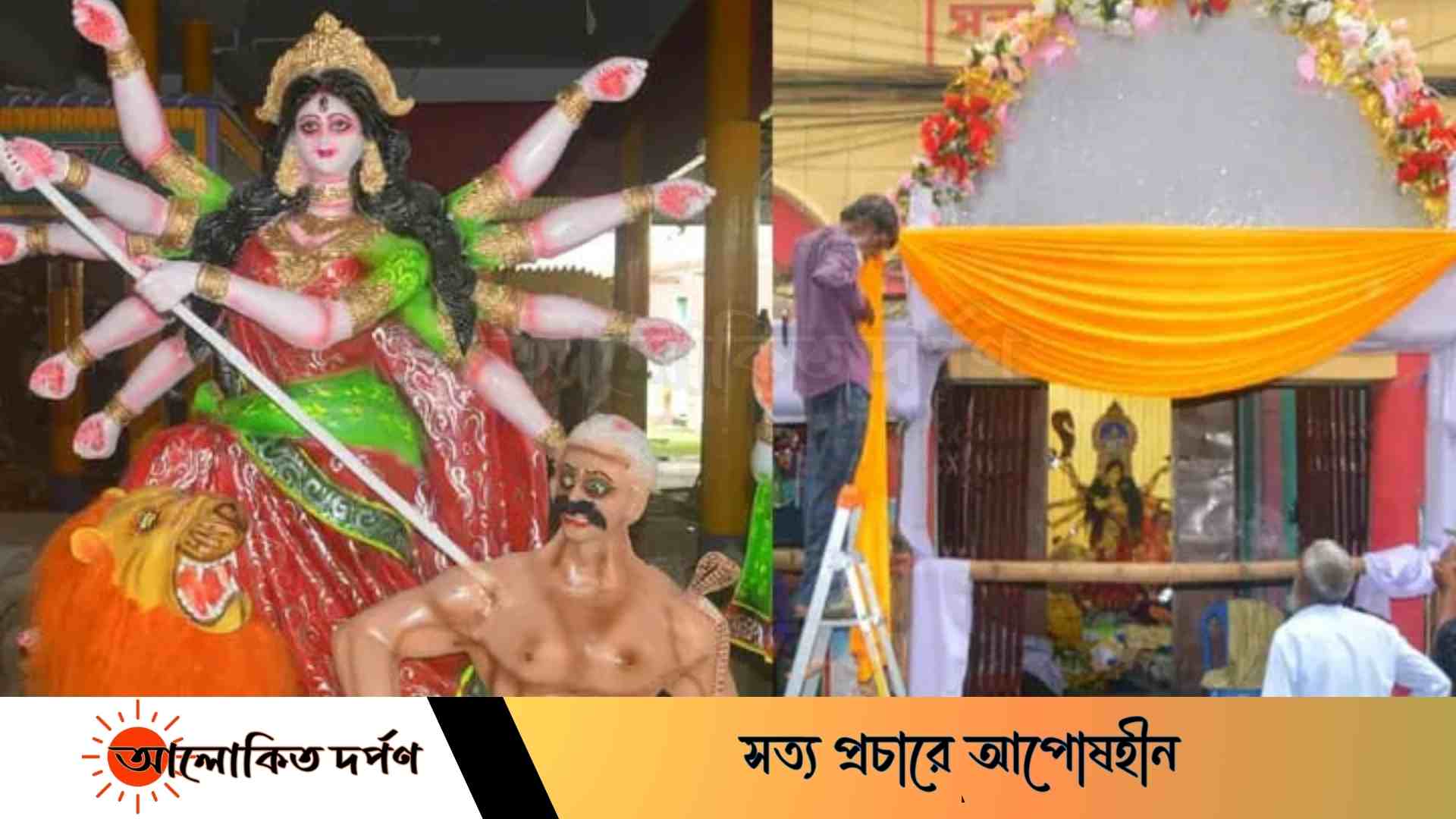 এ বছর দোলায় অর্থাৎ পালকিতে চেপে দেবীদুর্গা মর্ত্যলোকে পদার্পণ করবেন। আবার গজে অর্থাৎ হাতিতে চড়ে কৈলাসে ফিরবেন। পূজার প্রধান উপলক্ষ প্রতিমা তৈরির কাজও প্রায় শেষ। তুলির শেষ আঁচড়ে দেবী দুর্গাকে সাজিয়ে দিচ্ছেন শিল্পীরা। পাশাপাশি প্রতিমার শাড়ি, মুকুট, শাঁখা সিঁদুর লাগানো হচ্ছে। আজ সকাল থেকে মন্দিরে মন্দিরে পৌঁছাচ্ছে প্রতিমা। পূজা উদযাপন উপলক্ষে বগুড়া শহরের অলিগলিতে চলছে মন্দিরের প্যান্ডেল বানানোর কাজ।