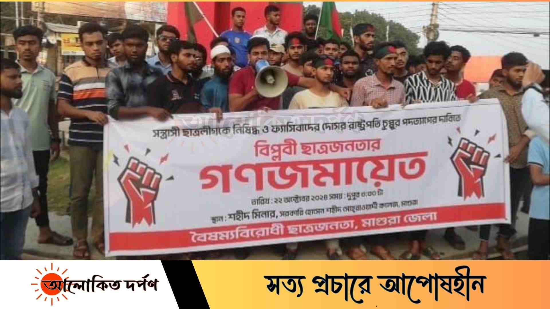 মাহিম সিদ্দিকী, মাগুরা প্রতিনিধিঃ মাগুরায় ছাত্রলীগকে নিষিদ্ধ করা ও রাষ্ট্রপতি সাহাবুদ্দীন চুপ্পুর পদত্যাগের দাবিতে গণজমায়েত ও বিক্ষোভ মিছিল অনুষ্ঠিত হয়েছে।