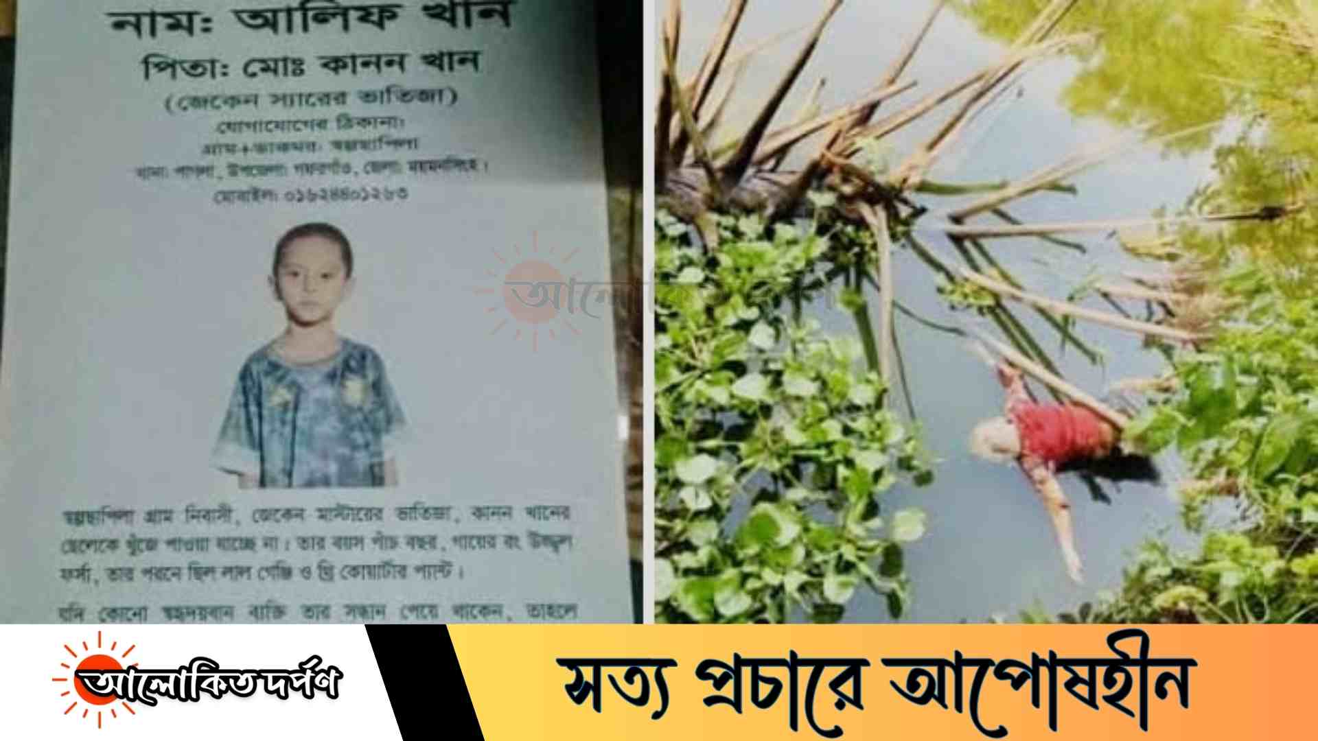 স্থানীয় সূত্র জানায়, গত বুধবার দুপুরে হঠাৎ নিখোঁজ হয় আলিফ। পরিবারের লোকজন বহু খোঁজাখুঁজির পর না পেয়ে থানায় একটি সাধারণ ডায়েরি (জিডি) করেন। কিন্তু কোথাও তার সন্ধান মেলেনি।