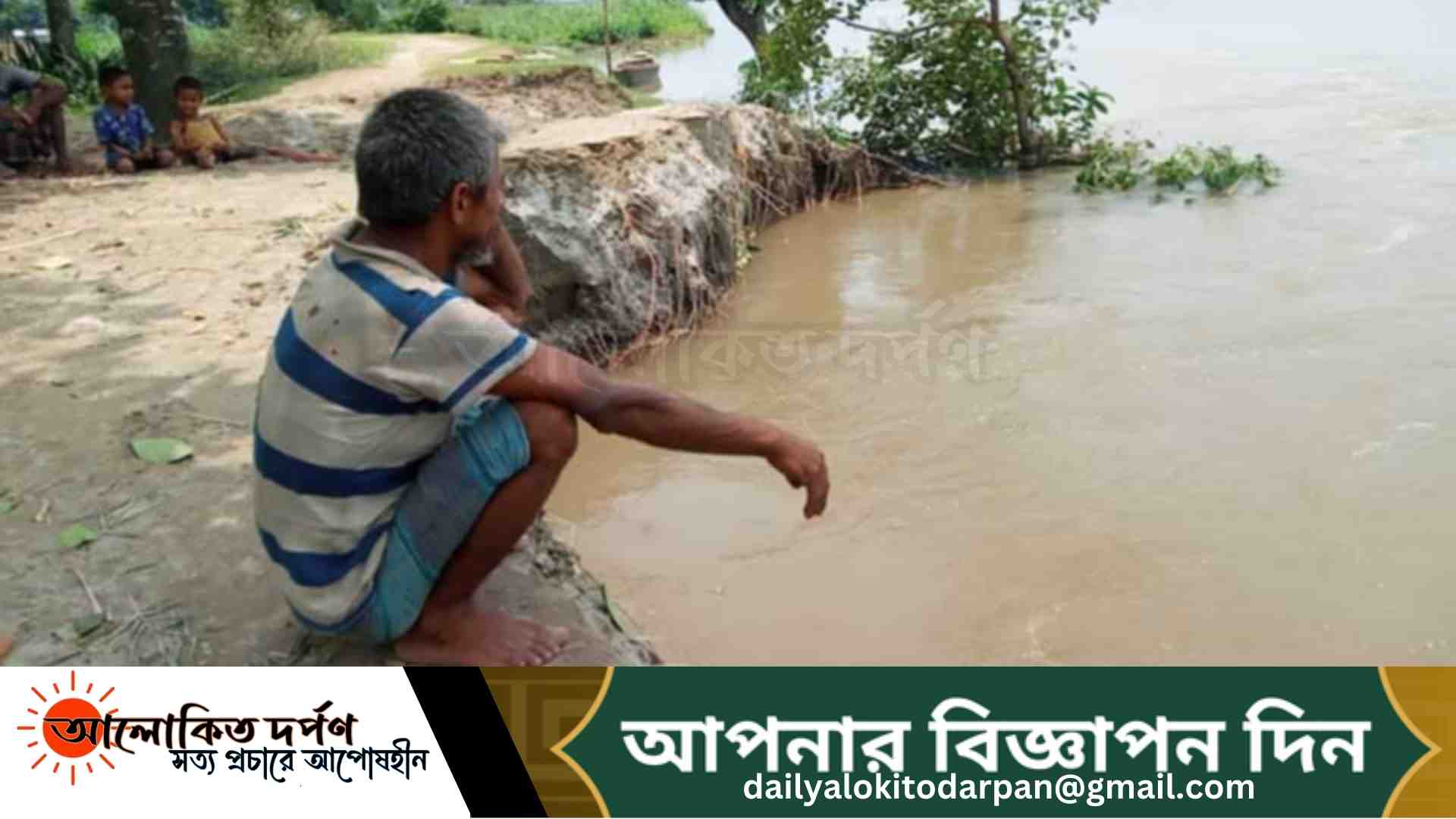 গত ছয় দিন থেকে কুড়িগ্রামের ফুলবাড়ীর নাওডাঙ্গা ইউনিয়নের চর গোড়কমন্ডপে টানা বৃষ্টিতে ধরলা নদী গর্ভে চলে যাচ্ছে চলাচলের রাস্তা, ফসলি জমি, ঘরবাড়িসহ বাঁশ বাগান।
