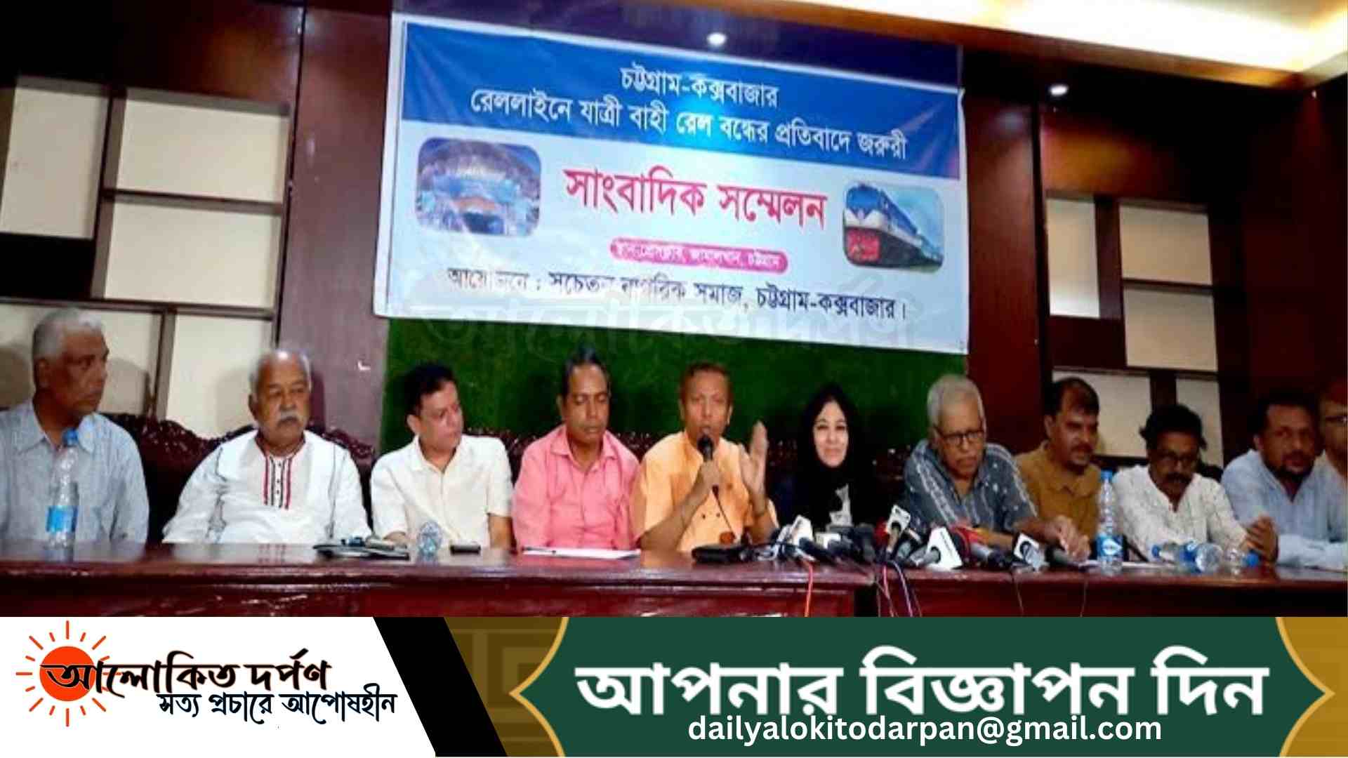 চট্টগ্রাম-কক্সবাজার রুটে চলাচল করা স্পেশাল ট্রেনটি স্থায়ীভাবে চলাচলের দাবিতে রোববার (২৩ জুন) দুপুরে চট্টগ্রাম প্রেসক্লাবে এক সংবাদ সম্মেলনের আয়োজন করা হয়। সচেতন নাগরিক সমাজ চট্টগ্রাম ও কক্সবাজার এ সংবাদ সম্মেলনের আয়োজন করে।