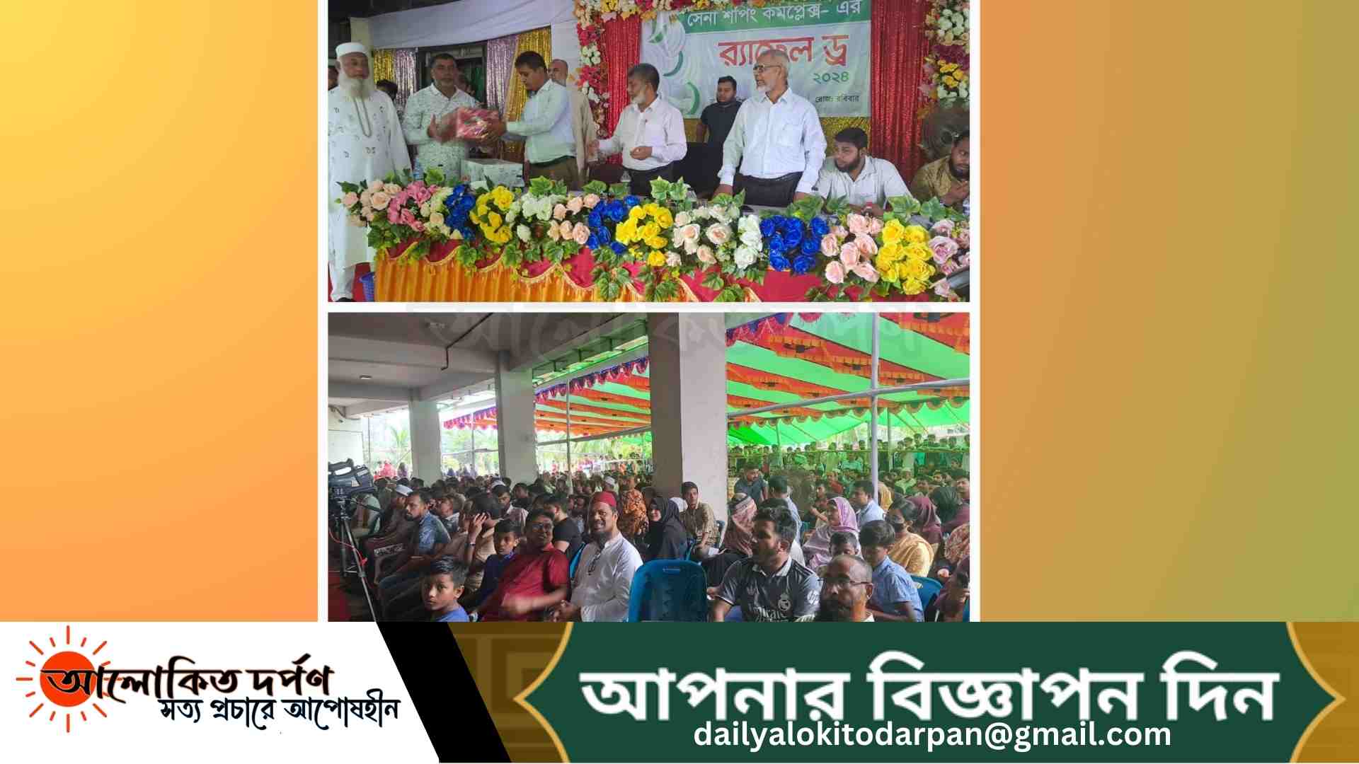শেখ মুহাম্মদ নজরুল ইসলাম, সাভার প্রতিনিধিঃ আজ ৩০জুন রোজ রবিবার সাভার সেনা শপিং কমপ্লেক্সের লটারীর ড্র ২০২৪ অনুষ্ঠিত হয়েছে। ব্যবসায়িক কমিটির প্রতিনিধি ও সাভার ক্যান্টনমেন্ট বোর্ডের কর্মকর্তাগণ উপস্থিত থেকে হাজারো দর্শক ও সেনা মার্কেট থেকে কেনাকাটা করে ফ্রি কুপন প্রাপ্ত বিপুল সংখ্যক ক্রেতাবৃন্দের উপস্থিতিতে বিশেষ স্বচ্ছ বক্সের হুইল ব্যবহার করে প্রকাশ্যে এই লটারীর কর্ম সম্পন্য হয়।