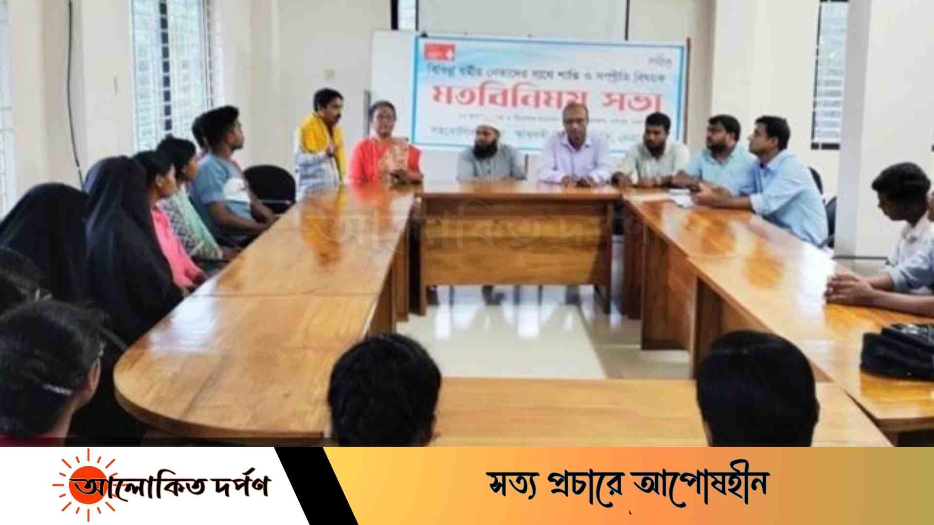 মত বিনিময় সভায় আস্থা প্রকল্পের মাঠ কর্মকর্তা ঝলমল সরকার এর সঞ্চালনায় বক্তব্যে রাখেন, প্রেসক্লাব সভাপতি ও উপজেলা পূজা উদযাপন কমিটির সাধারন সম্পাদক নির্মলেন্দু সরকার বাবুল, ডিএসকের কৈশোর কর্মসূচির প্রোগ্রাম অফিসার দিলীপ কুমার ঘোষ, দ্বীনি আলিম মাদ্রাসা মসজিদের ইমাম নূর মোহাম্মদ, খ্রিষ্টান ধর্মাবলম্বীদের নারী নেত্রী রাখী দ্রং, দেশওয়ালী পাড়া শিব মন্দিরের পুরোহিত নিটুল শার্মা রায়।