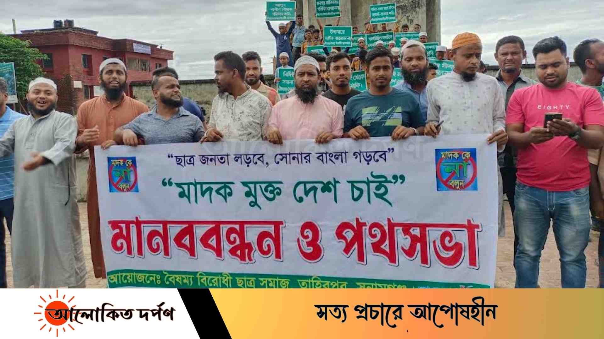 তাহিরপুরে ছাত্র সমাজের উদ্যোগে মাদকের বিরুদ্ধে মানববন্ধন