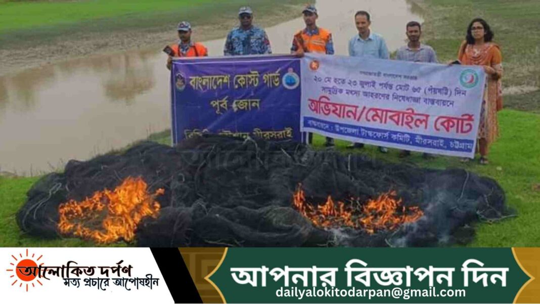 মোঃ আবদুর রহিম, চট্টগ্রাম প্রতিনিধিঃ মীরসরাইয়ে ডোমখালী ঘাট সংলগ্ন সন্দ্বীপ চ্যানেল হতে মৎস্য বিভাগের অভিযানে ৬ হাজার মিটারের ৪ টি চরঘেরা জাল জব্দ করে ধ্বংস করা হয়েছে।