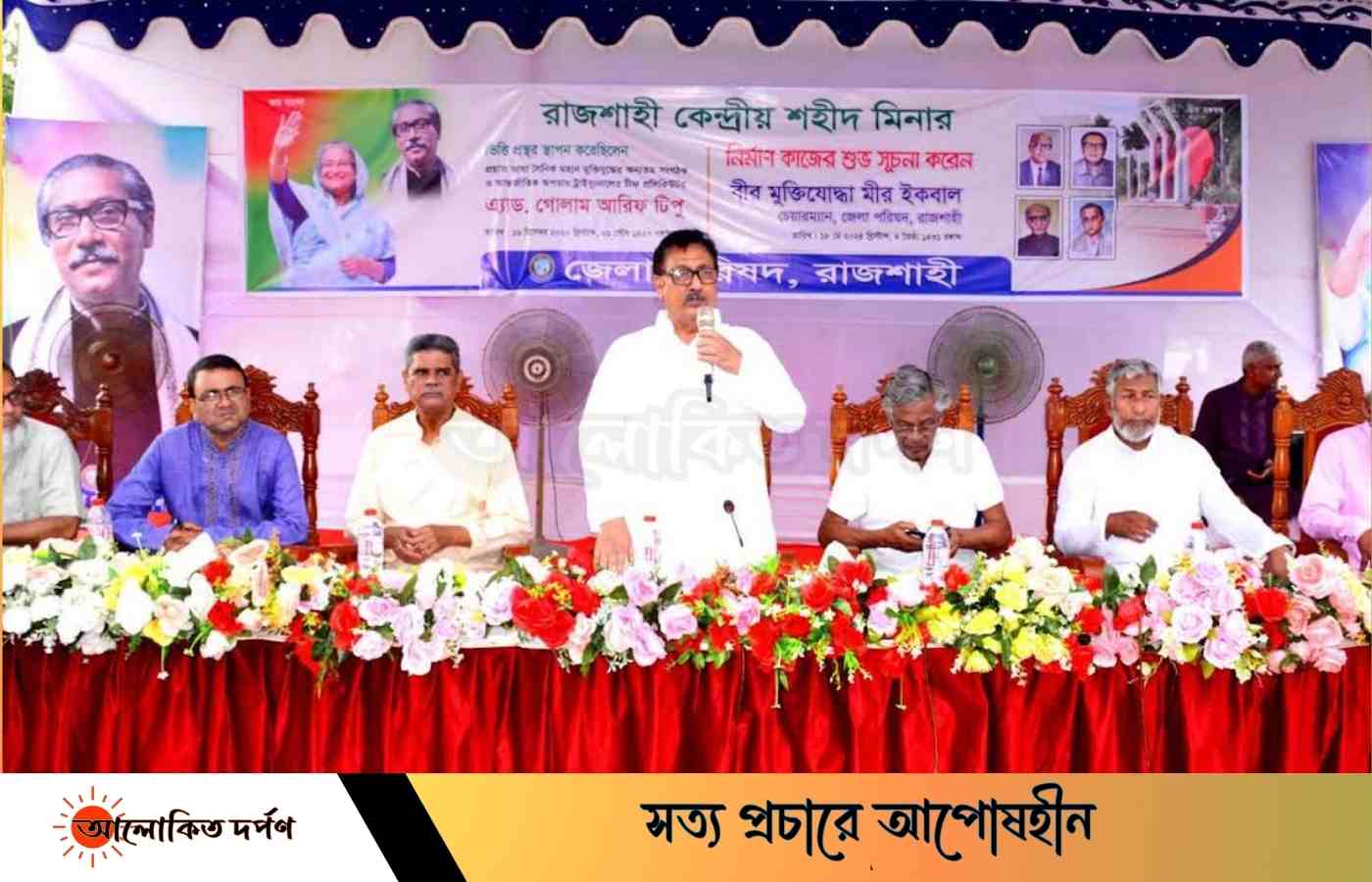 প্রথম বারের মতো রাজশাহী জেলা পরিষদের উদ্যোগে কেন্দ্রীয় শহীদ মিনার নির্মাণ কাজের শুভ সূচনা। শনিবার(১৮মে) বীর মুক্তিযোদ্ধাবৃন্দ, সামাজিক-সাংস্কৃতিক ও রাজনৈতিক নেতৃবৃন্দ এবং নাগরিক সমাজের প্রতিনিধিদের নিয়ে পুরাতন সার্ভে ইন্সটিটিউটের জায়গায় পূর্ব নির্ধারিত স্থানে কেন্দ্রীয় শহীদ মিনার নির্মাণকাজের আনুষ্ঠানিক সূচনা করেন রাজশাহী জেলা পরিষদের চেয়ারম্যান বীর মুক্তিযোদ্ধা মীর ইকবাল।