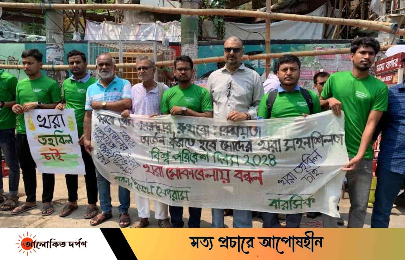 মোঃ সাকিবুল ইসলাম স্বাধীন, রাজশাহী: রাজশাহীতে বিশ্ব পরিবেশ দিবস উপলক্ষে আজ ০৪ জুন ২০২৪, মঙ্গলবার সকাল ১০.৩০ মিনিটে রাজশাহীর প্রাণকেন্দ্র সাহেববাজার জিরো পয়েন্টে করবো ভূমি পুনরুদ্ধার রুখবো মরুময়তা, অর্জন করতে হবে মোদের খরা সহনশিলতা প্রতিপাদ্যে খরা মোকাবেলায় বন্ধন কর্মসূচী অনুষ্ঠিত হয়েছে। বরেন্দ্র অঞ্চলের যুব/যুবাদের বৃহৎ ঐক্য বরেন্দ্র ইয়ুথ ফোরাম ও গবেষণা উন্নয়ন প্রতিষ্ঠান বাংলাদেশ রিসোর্স সেন্টার ফর ইন্ডিজিনাস নলেজ (বারসিক) এর যৌথ আয়োজনে খরা মোকাবেলায় বন্ধন কর্মসূচী অনুষ্ঠিত হয়।