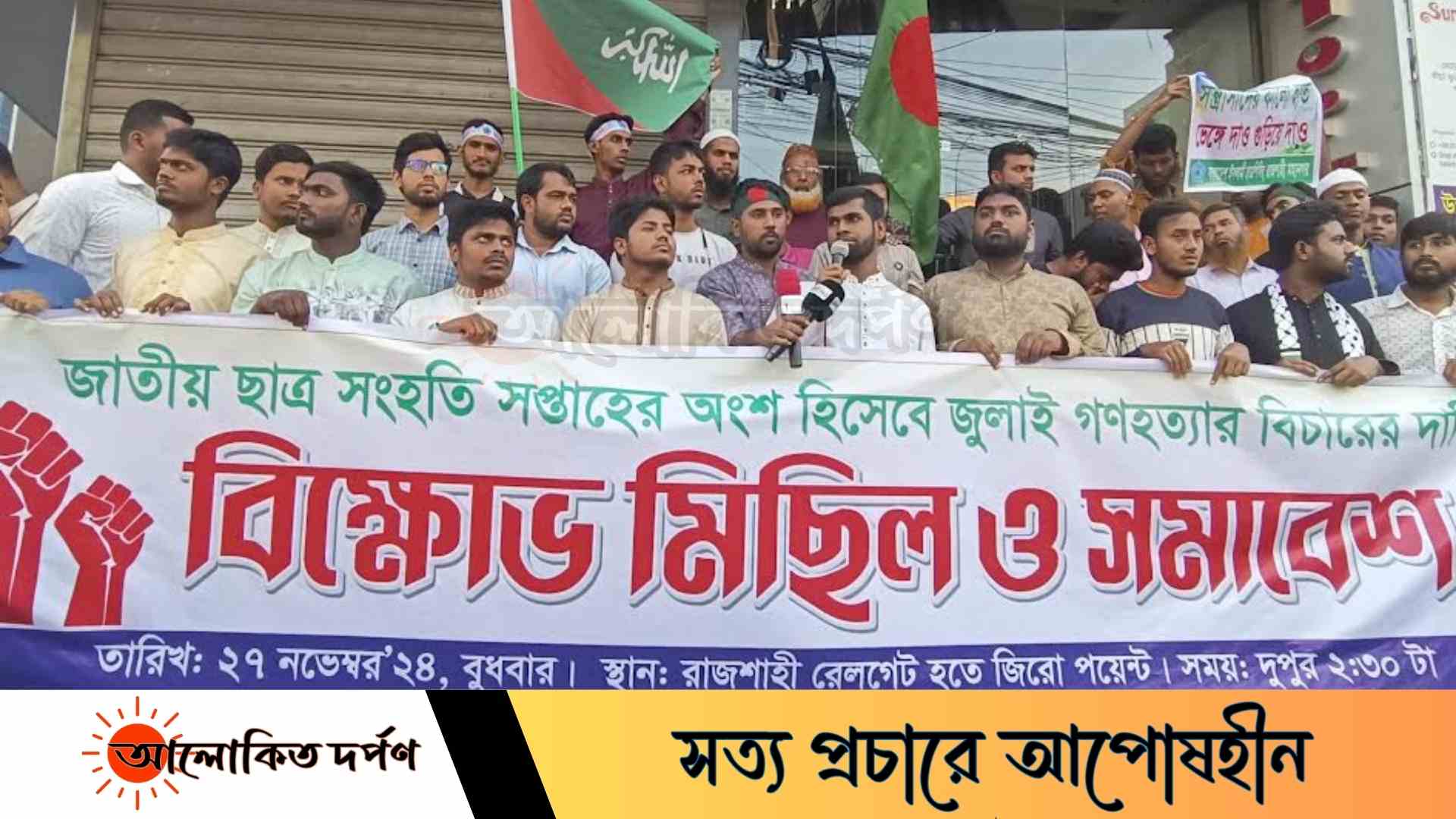 বক্তারা বলেন, "আগামীতে রাজশাহীর মাটিতে কোনো ফ্যাসিবাদী শক্তি ও তার দোসরদের জায়গা হবে না। নিষিদ্ধ ছাত্রলীগ যেন কোনোভাবেই মাথাচাড়া দিয়ে বাংলা জমিনে অরাজকতা করতে না পারে, সেদিকে সবাইকে সতর্ক থাকতে হবে। জুলাইয়ের গণহত্যার তিন মাস পার হলেও এখনো খুনিদের গ্রেপ্তার করা হয়নি। যারা আমাদের ভাইদের হত্যা করেছে, তাদের দ্রুত গ্রেপ্তার করে দৃষ্টান্তমূলক শাস্তি দিতে হবে।"