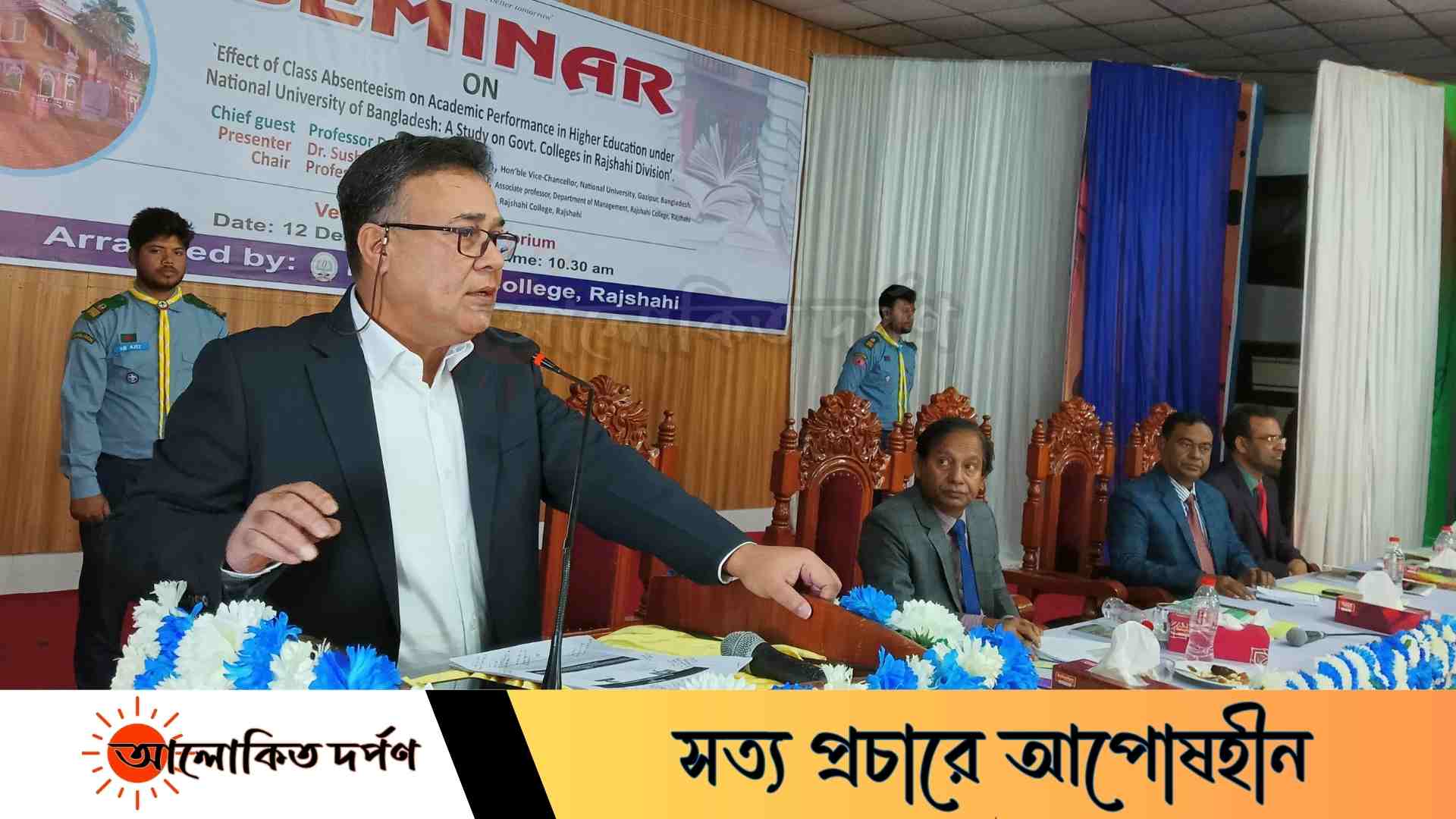সেমিনারে রাজশাহী কলেজের অধ্যক্ষ অধ্যাপক মুঃ যহুর আলীর সভাপতিত্বে প্রধান অতিথি হিসেবে উপস্থিত ছিলেন বাংলাদেশের জাতীয় বিশ্ববিদ্যালয়ের উপাচার্য অধ্যাপক ড. এএসএম আমানুল্লাহ। বিশেষ অতিথি হিসেবে উপস্থিত ছিলেন রাজশাহী কলেজে উপাধ্যক্ষ প্রফেসর ড. মো: ইব্রাহিম আলী, রাজশাহী কলেজে শিক্ষক পরিষদের সভাপতি ও ব্যাবস্থাপনা বিভাগের বিভাগীয় প্রধান প্রফেসর ড. মোঃ সেরাজ উদ্দীন।