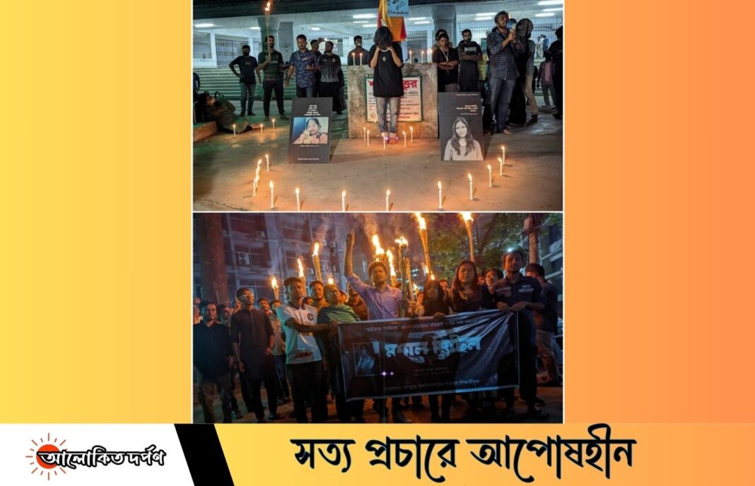 ফাইরুজ অবন্তিকার আত্মহত্যার সুষ্ঠু বিচারের দাবিতে জবিতে আলোক প্রজ্বলন ও পারফরম্যান্স আর্ট প্রদর্শন করেছেন বিশ্ববিদ্যালয়ের শিক্ষার্থীরা।