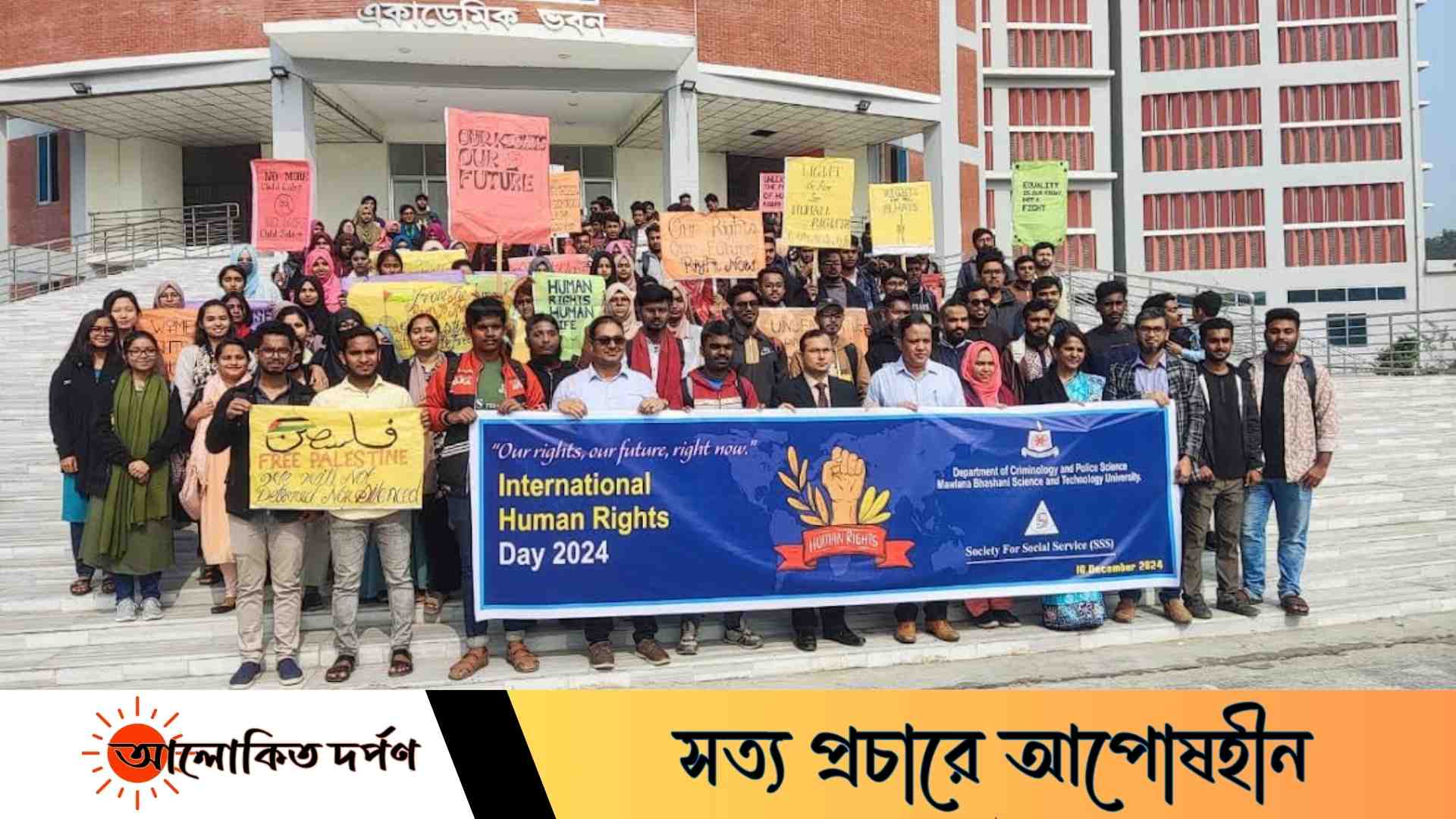 মো: আলিফ হোসাইন, মাভাবিপ্রবি প্রতিনিধিঃ মাওলানা ভাসানী বিজ্ঞান ও প্রযুক্তি বিশ্ববিদ্যালয়ে (মাভাবিপ্রবি) আজ মঙ্গলবার (১০ ডিসেম্বর) আন্তর্জাতিক মানবাধিকার দিবস উদযাপিত হয়েছে। ক্রিমিনোলজি অ্যান্ড পুলিশ সায়েন্স বিভাগের উদ্যোগে আয়োজিত এ অনুষ্ঠানে "Our Rights, Our Future, Right Now" প্রতিপাদ্যে দিবসটি পালিত হয়।