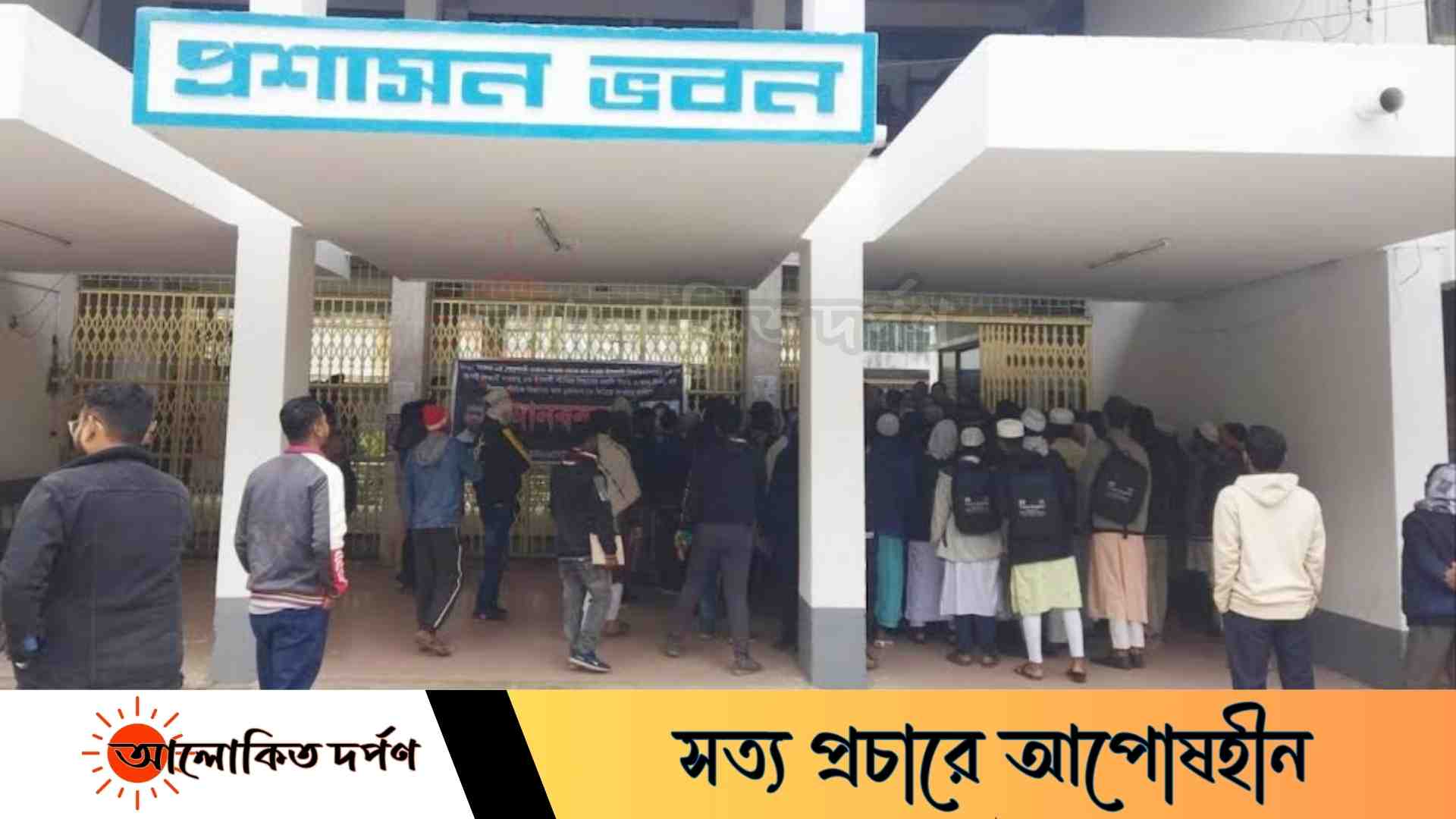 শনিবার (৪ জানুয়ারি) বেলা ১১টার দিকে শিক্ষার্থীরা প্রশাসন ভবনে তালা লাগিয়ে দেন, ফলে উপ-উপাচার্য, কোষাধ্যক্ষসহ প্রশাসনের বিভিন্ন দপ্তরের কর্মকর্তারা ভবনে অবরুদ্ধ হয়ে পড়েন।