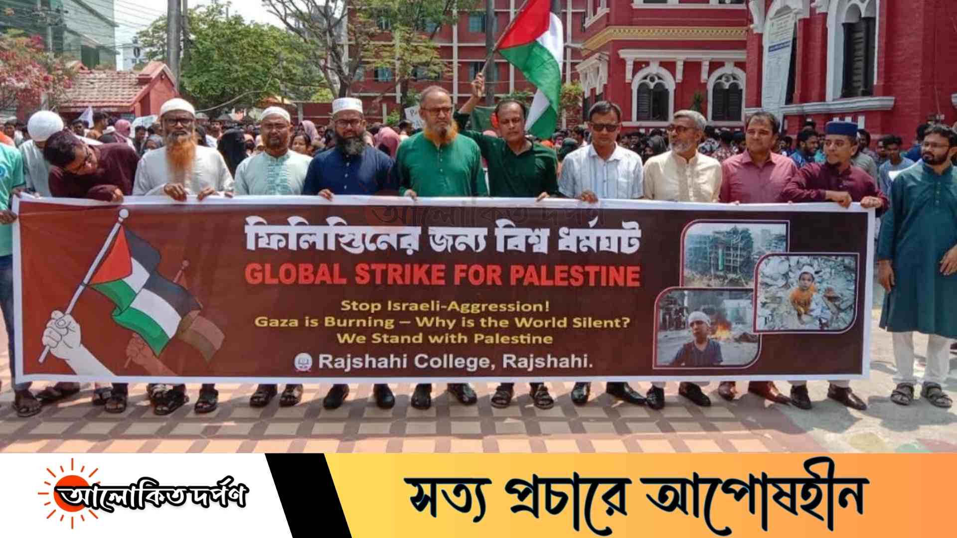 “গ্লোবাল স্ট্রাইক ফর গাজা” কর্মসূচিতে সংহতি, রাজশাহী কলেজে ধর্মঘট ও মানববন্ধন