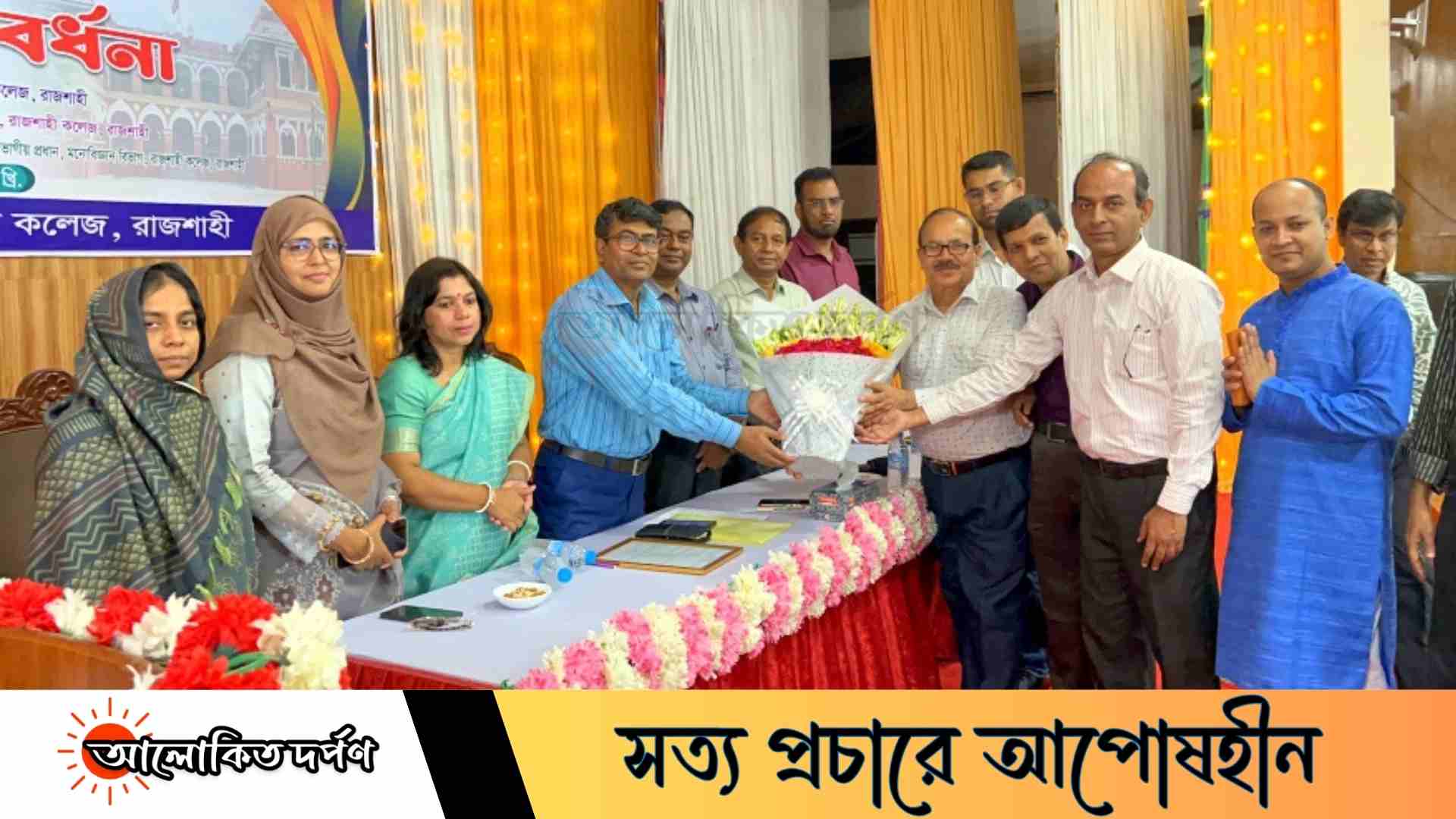 রাজশাহী কলেজে ২৬ বছরের শিক্ষকতা শেষে ফুলেল শুভেচ্ছায় অধ্যাপক পার্থ সারথির বিদায়
