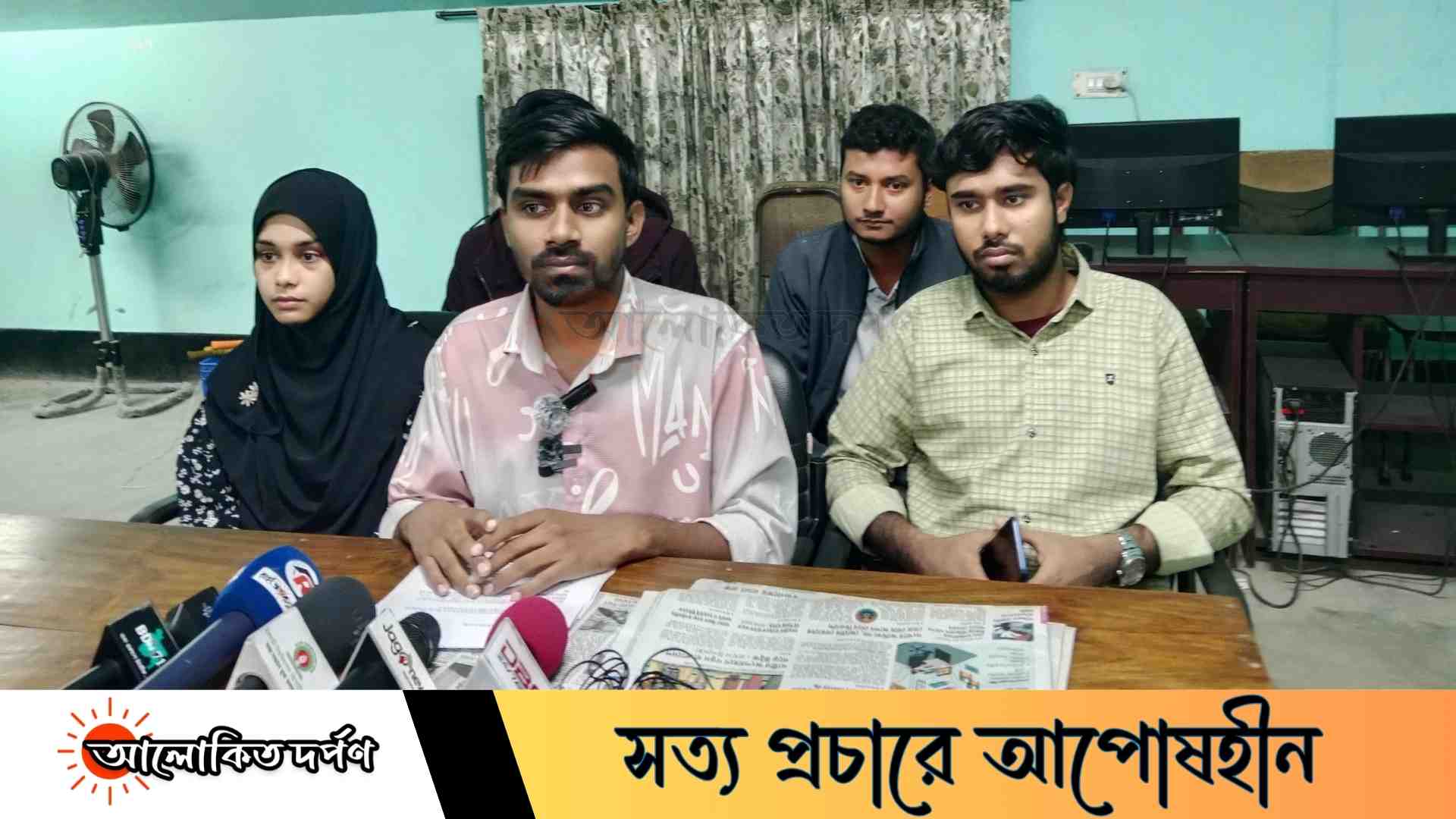 বিধি লঙ্ঘন করায় সমাধান খুঁজতে বুধবার (১০ ডিসেম্বর) বিশ্ববিদ্যালয়ের প্রেস কর্নারে সংবাদ সম্মেলন করেন পাঁচ শিক্ষার্থী। তারা হলেন, শিক্ষার্থী আব্দুর রহমান, বায়োজীদ বোস্তামী, নাহিদ আক্তার নোভা,মাহাথির মোহাম্মদ চমন ও রবিউল ইসলাম প্রমূখ।