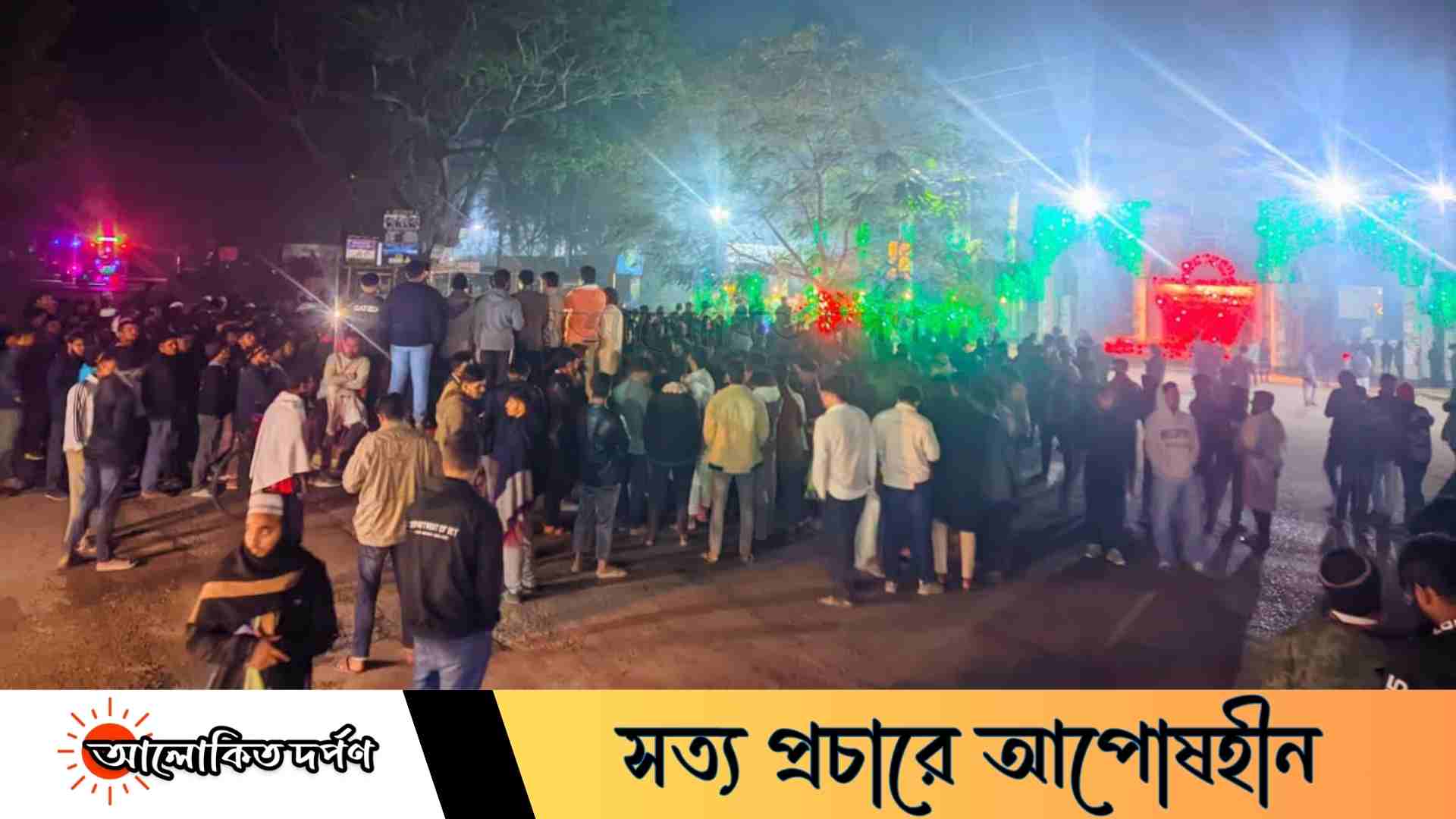 এর আগে রাত ১১টার দিকে জিয়া মোড় থেকে একটি বিক্ষোভ মিছিল বের করেন শিক্ষার্থীরা। মিছিলটি পুরো ক্যাম্পাস প্রদক্ষিণ শেষে প্রধান ফটকের সামনে মহাসড়ক অবরোধে গিয়ে শেষ হয়। আন্দোলনে বিশ্ববিদ্যালয় শাখা ছাত্রদল, ছাত্রশিবির, ছাত্র ইউনিয়ন, বৈষম্যবিরোধী ছাত্র আন্দোলন, ইসলামী ছাত্র আন্দোলনসহ বিভিন্ন ছাত্রসংগঠনের নেতাকর্মী এবং সহস্রাধিক সাধারণ শিক্ষার্থী অংশ নেন। বিক্ষোভ চলাকালে ‘আমরা সবাই হাদী হবো, গুলির মুখেও কথা ক’বো’, ‘শহীদের রক্ত বৃথা যেতে দেব না’, ‘খুনীদের ফাঁসি চাই’সহ নানা স্লোগানে মুখর হয়ে ওঠে ক্যাম্পাস এলাকা।