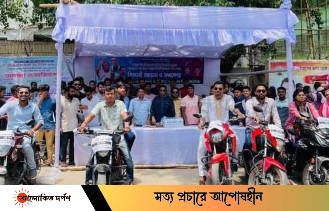 গুচ্ছ পদ্ধতিতে ২০২৩-২৪ শিক্ষাবর্ষে জগন্নাথ বিশ্ববিদ্যালয়ে ‘এ’ ইউনিটের ভর্তি পরীক্ষা দিতে আসা পরীক্ষার্থীদের কেন্দ্রে পৌঁছে দিতে জয় বাংলা বাইক সার্ভিসের ব্যবস্থা করেছে জগন্নাথ বিশ্ববিদ্যালয় শাখা ছাত্রলীগ। অন্য কেন্দ্রের পরীক্ষার্থীরা ভুল করে জগন্নাথ বিশ্ববিদ্যালয় কেন্দ্রে চলে আসলে তাদের নির্ধারিত কেন্দ্রে পৌঁছে দিতেই এ সার্ভিস চালু করেছে জবি ছাত্রলীগ।