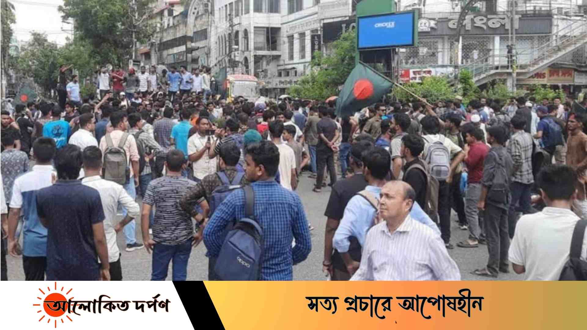 রাজধানীর সাইন্সল্যাবে কোটা বিরোধী আন্দোলনে ঢাকা কলেজের শিক্ষার্থীরা