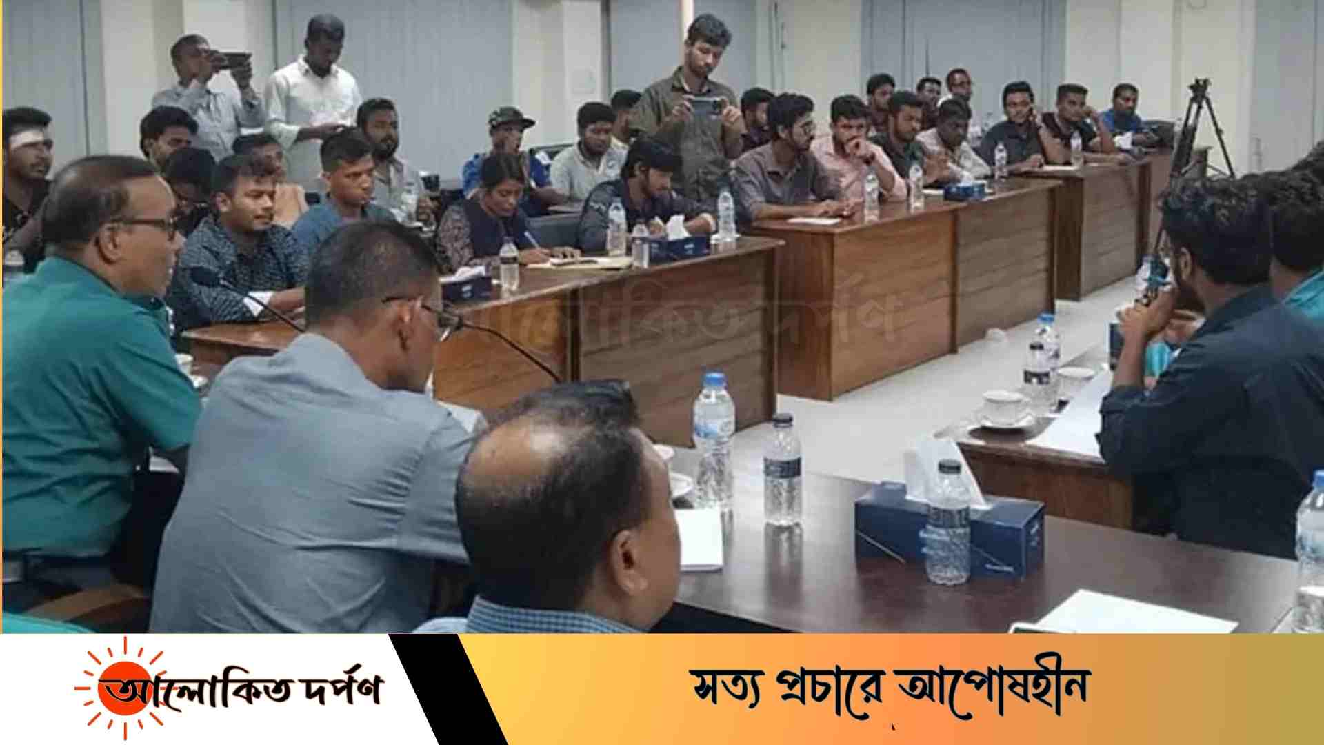 সভায় পুলিশ কমিশনারের এক পাশে খুলনা মহানগর বিএনপির আহ্বায়ক শফিকুল আলম (মনা), অন্য পাশে সদস্যসচিব শফিকুল আলম (তুহিন)সহ বিএনপি ও জামায়াতের নেতারা বসেছিলেন। এটা নিয়ে পুলিশ প্রশাসনের ওপর ক্ষোভ ঝাড়েন শিক্ষার্থীরা।
