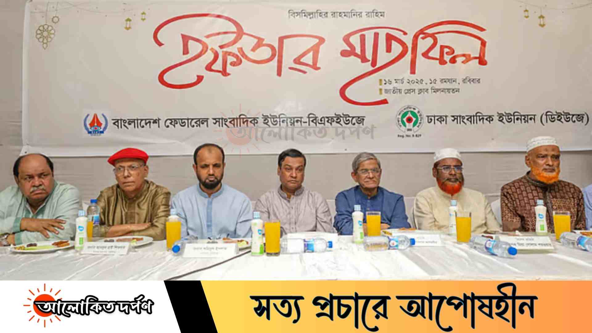 ইফতার মাহফিলে প্রধান অতিথি হিসেবে উপস্থিত ছিলেন বিএনপির মহাসচিব মির্জা ফখরুল ইসলাম আলমগীর। অনুষ্ঠানটি সঞ্চালনা করেন ডিইউজের সাধারণ সম্পাদক খুরশীদ আলম। আরও বক্তব্য দেন বাংলাদেশ ফেডারেল সাংবাদিক ইউনিয়নের ভারপ্রাপ্ত সভাপতি ওবায়দুর রহমান শাহিন, মহাসচিব কাদের গনি চৌধুরী এবং ঢাকা সাংবাদিক ইউনিয়নের সভাপতি শহিদুল ইসলাম।