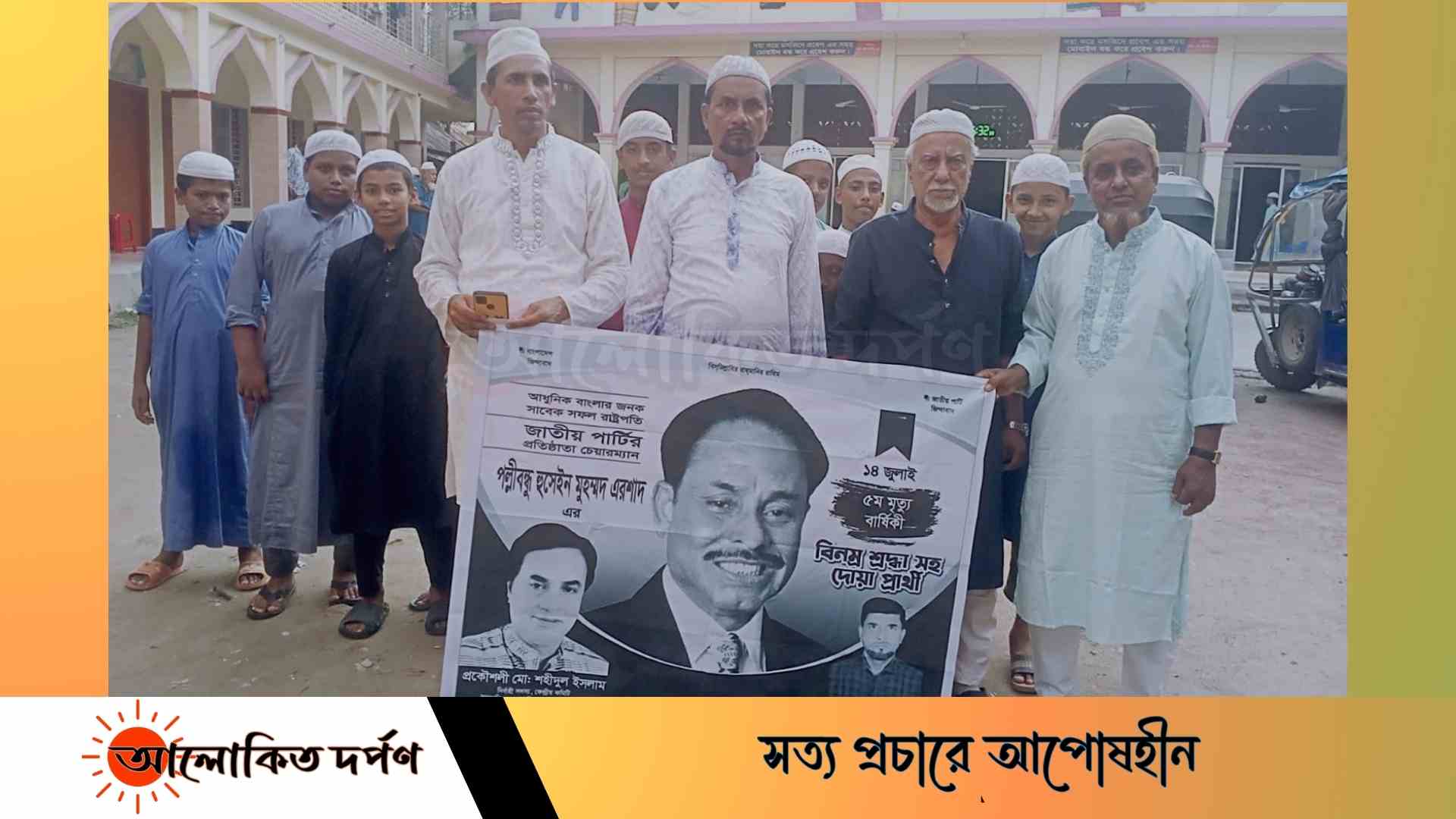 রায়পুরা উপজেলা জাতীয় পার্টি (জাপার) উদ্যোগে রবিবার শ্রীরামপুর সিরাজনগর হাফিজিয়া মাদ্রাসা জামে মসজিদে এ অনুষ্ঠানের আয়োজন করা হয়। সেখানে আছর নামাজের পর মসজিদের ইমাম মরহুমের আত্মার মাগফিরাত কামনা করে কুরআন তিলাওয়াত, দোয়া ও মোনাজাত করে।